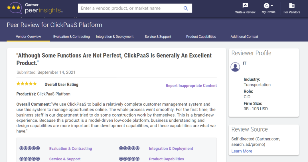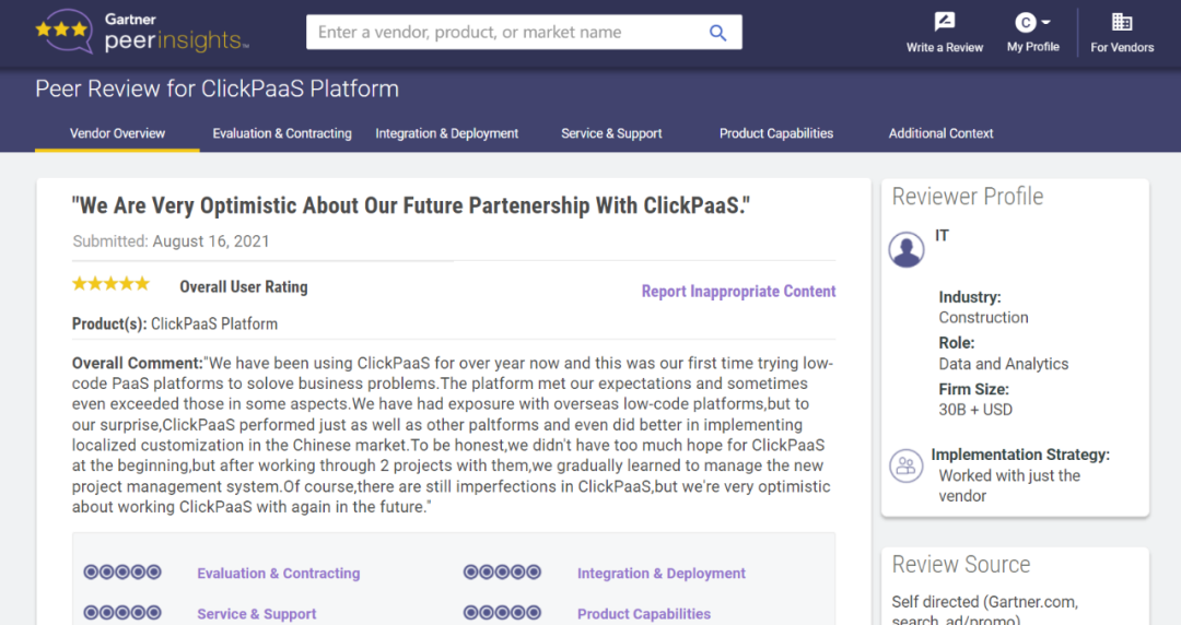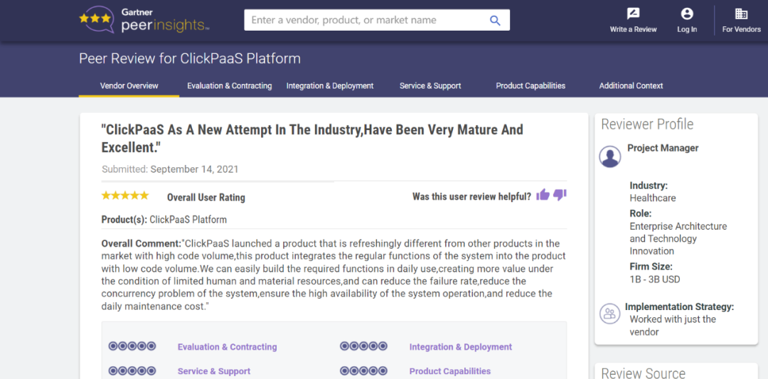 Tips:::【Peer Insights】——用户对企业IT产品和服务发布真实评价的平台。。目前已有355个市场,,,,255,000条经过验证的评价。。每一条评价Gartner会针对参评企业营收规模及参评人员信息做验证、、评价内容做多维核实。。